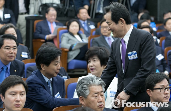 (서울=포커스뉴스) 20일 오전 서울 여의도 국회에서 열린 더불어민주당 20대 총선 당선자 대회에 참석한 정세균 당선인이 자리로 향하고 있다.