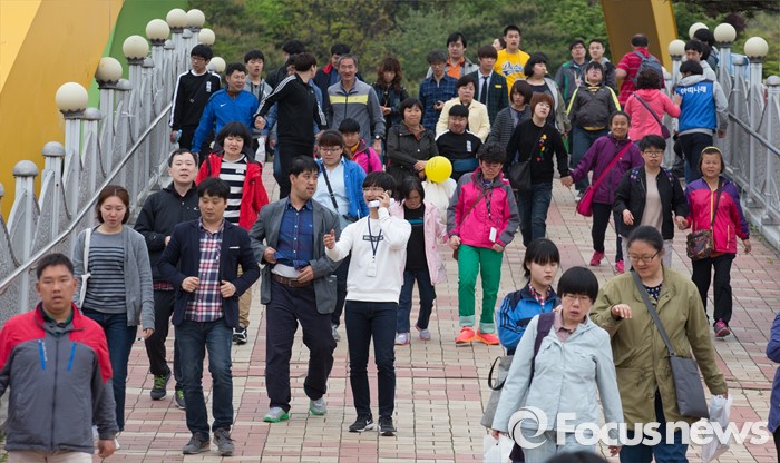(청주=포커스뉴스) 20일 오후 충북 청주 올림픽국민생활관 일원에서 열린 제36회 장애인의 날 기념행사에서 참가자들이 거북이마라톤을 하고 있다.