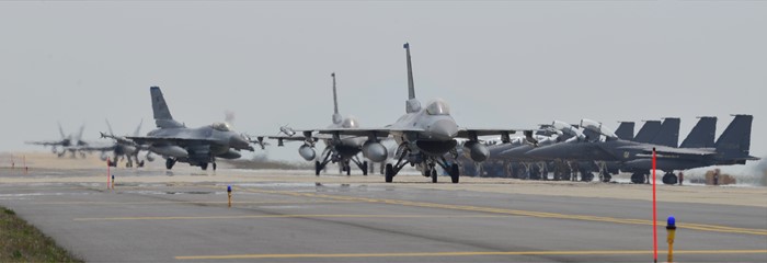 | △ 활주하는 F-16 미 공군 전투기 |