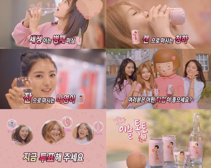 (서울=포커스뉴스) 걸그룹 아이오아이(I.O.I) 멤버들이 참여한 복숭아 맛 탄산주 '이슬톡톡'의 온라인 바이럴 영상이 화제다.