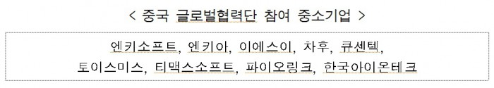미래부는 이번 글로벌협력단을 토대로 중국, 동남아 국가와의 전략적 파트너십을 강화하고 향후 우리 ICT기업의 신시장 개척을 지원하기 위한 글로벌 협력 활동을 지속해 나갈 계획이다.동남아 글로벌협력단 참여기업(위)와 중국 글로벌협력단 참여기업.<표제공=미래부>