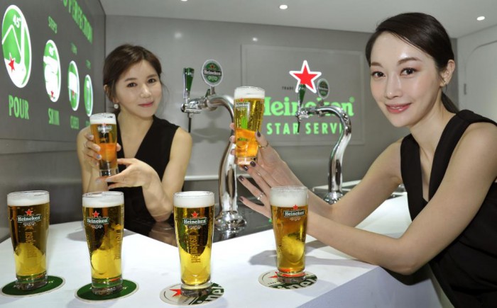 한편, 하이네켄의 브루락 시스템은 오는 6월부터 국내에 도입될 예정이다.하이네켄 모델들이 새로운 생맥주 시스템 '브루락'을 시연해 보이고 있다.<사진제공=하이네켄>