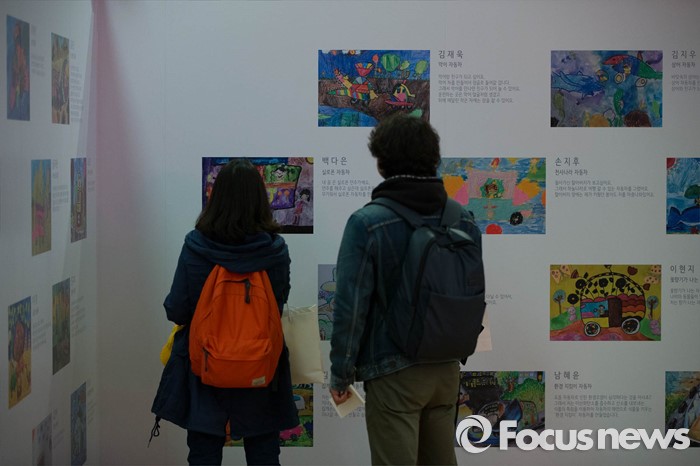 (서울=포커스뉴스) 21일 오전 서울 중구 동대문디자인플라자(DDP)에서 열린 '제1회 브릴리언트 키즈모터쇼'를 찾은 관람객들이 아이들의 스케치를 보고 있다.