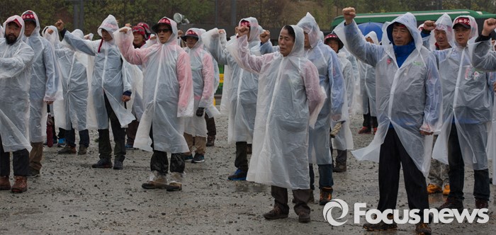 (세종=포커스뉴스) 전국건설노동조합 구성원들이 21일 오전 세종시 정부세종청사 제3주차장에서 확대간부 결의대회를 갖고 공정거래위원회가 시행한 건설현장 불공정 행위에 대한 대책인 하도급대금직불제가 건설노동자의 임금체불이 늘어날 수 있다고 주장하며 즉각적인 철회를 요구하고 있다.