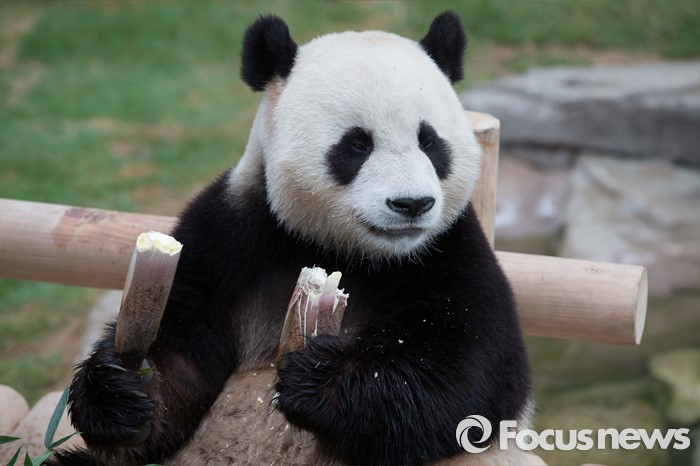 (용인=포커스뉴스) 21일 오전 경기도 용인시 에버랜드에서 열린 '판다월드 개관식'에서 러바오가 먹이를 먹고 있다.