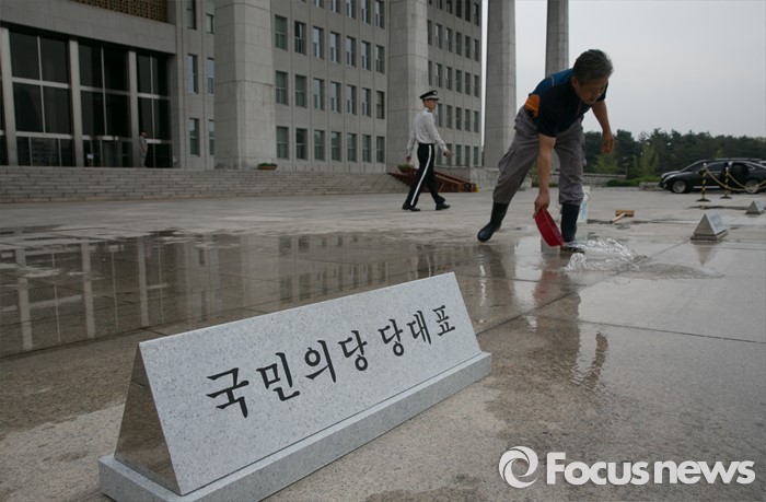 (서울=포커스뉴스) 21일 오전 서울 여의도 국회 본청 앞 주차장에 국민의당 지도부의 주차공간을 위한 명패가 설치되어 있다.