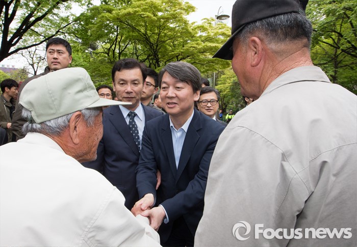 (청주=포커스뉴스) 안철수 국민의당 상임공동대표가 21일 오후 충북 청주 상당구 성안길을 찾아 시민들과 인사를 하고 있다. 안 대표는 4.13 국회의원선거에서 국민의당을 지지해준 것에 대한 감사의 뜻을 전했다.