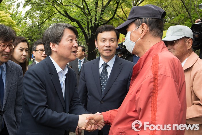 (청주=포커스뉴스) 안철수 국민의당 상임공동대표가 21일 오후 충북 청주 상당구 성안길을 찾아 시민들과 인사를 하고 있다. 안 대표는 4.13 국회의원선거에서 국민의당을 지지해준 것에 대한 감사의 뜻을 전했다.