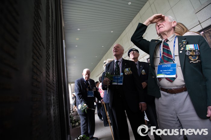 (서울=포커스뉴스) 임진강 및 가평전투 65주년을 맞은 21일 오후 서울 용산구 전쟁기념관에 6.25전쟁에 참전했던 영연방(영국, 캐나다, 호주, 뉴질랜드) 참전용사들이 방문해 유엔(UN) 참전국 전사자 명비를 보고 있다.