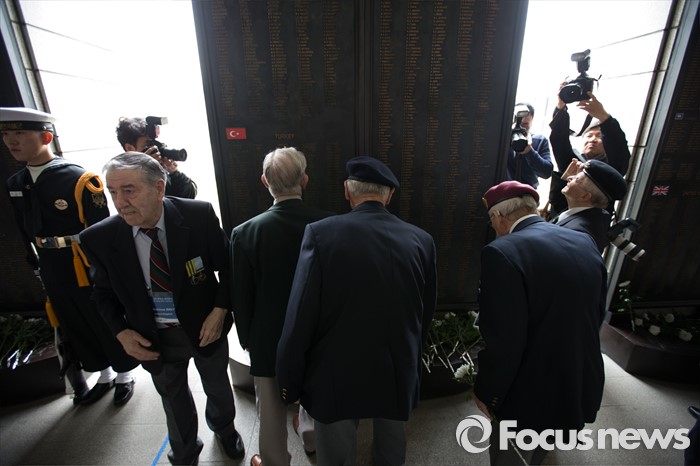 (서울=포커스뉴스) 임진강 및 가평전투 65주년을 맞은 21일 오후 서울 용산구 전쟁기념관에 6.25전쟁에 참전했던 영연방(영국, 캐나다, 호주, 뉴질랜드) 참전용사들이 방문해 유엔(UN) 참전국 전사자 명비를 보고 있다.