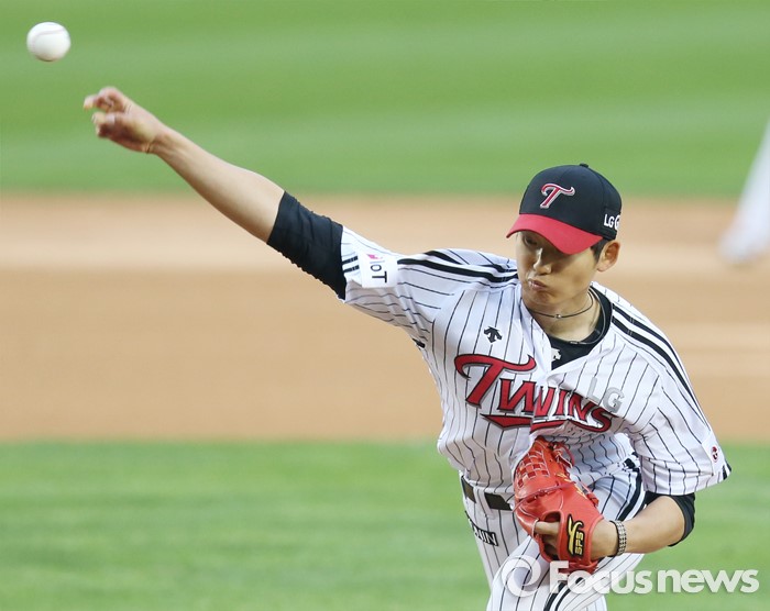 (서울=포커스뉴스) 21일 서울 잠실구장에서 열린 2016 프로야구 NC-LG 경기에서 1회초 LG 선발투수 이준형이 투구하고 있다.