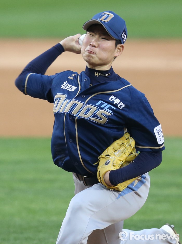 (서울=포커스뉴스) 21일 서울 잠실구장에서 열린 2016 프로야구 NC-LG 경기에서 1회말 NC 선발투수 이재학이 투구하고 있다.