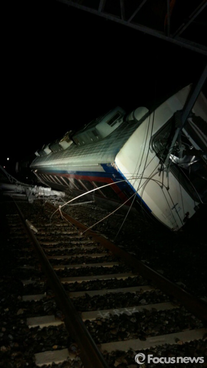 (서울=포커스뉴스) 22일 오전 전남 여수시 율촌역 부근에서 무궁화호가 탈선, 기관사 1명이 숨지는 등 사상자가 발생했다. 현재 당국은 현장을 수습하고 탈선 원인을 조사하고 있다.<사진제공=여수소방서>
