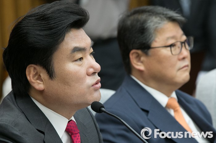 (서울=포커스뉴스) 원유철(왼쪽) 새누리당 원내대표가 22일 오전 서울 여의도 국회에서 열린 원내대책회의에 참석해, 모두발언하고 있다.