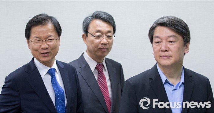 (서울=포커스뉴스) 안철수(오른쪽), 천정배 국민의당 상임공동대표와 김성식 최고위원(가운데)이 22일 오전 서울 마포 당사에서 열린 최고위원회의에 참석하고 있다.