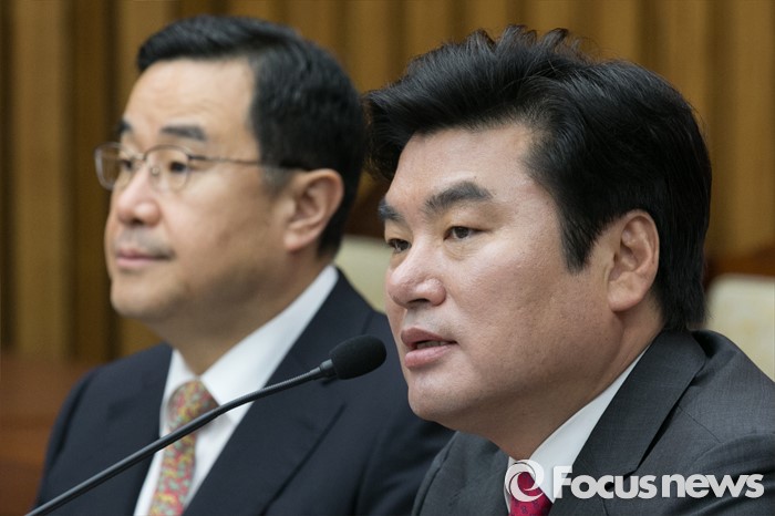 (서울=포커스뉴스) 원유철(오른쪽) 새누리당 원내대표가 22일 오전 서울 여의도 국회에서 열린 원내대책회의에 참석해, 모두발언하고 있다.