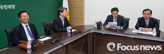 (서울=포커스뉴스) 안철수, 천정배 국민의당 상임공동대표가 22일 오전 서울 마포 당사에서 열린 최고위원회의에 참석하고 있다. 왼쪽부터 천 대표, 안 대표, 주승용 원내대표, 장병완 정책위의장