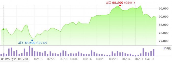 이에 따라 에스오일에 대한 투자의견을 '매수'로 목표주가를 11만원으로 유지했다.최근 3개월간 에스오일 주가 추이 <그래픽출처=네이버>