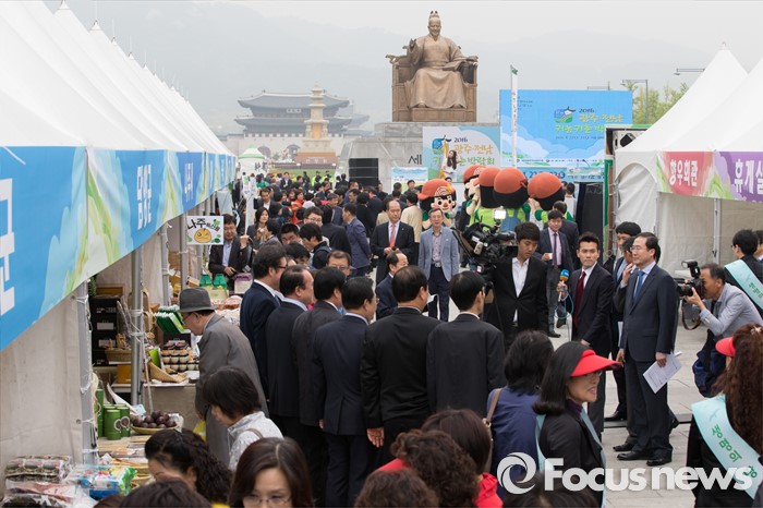(서울=포커스뉴스) 22일 오전 서울 광화문 광장에서 열린 '2016 광주·전남 귀농귀촌 박람회'에서 시민들을 비롯한 참석자들이 다양한 상품들을 살펴보고 있다.