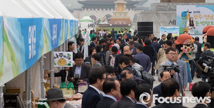 (서울=포커스뉴스) 22일 오전 서울 광화문 광장에서 열린 '2016 광주·전남 귀농귀촌 박람회'에서 시민들을 비롯한 참석자들이 다양한 상품들을 살펴보고 있다.