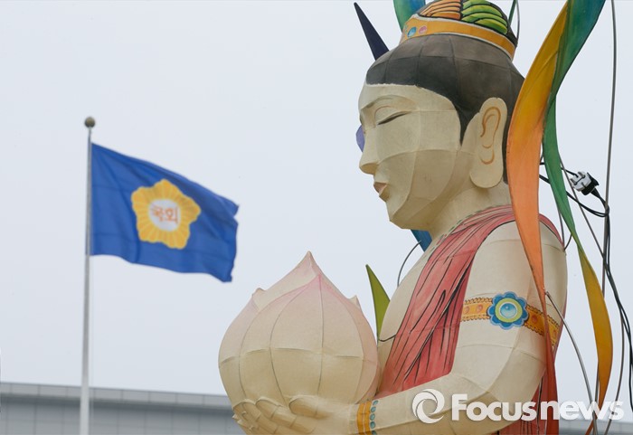 (서울=포커스뉴스) 석가탄신일을 3주 가량 앞둔 22일 오후 서울 여의도 국회 본청 앞 분수광장에 연등이 설치되어 있다.