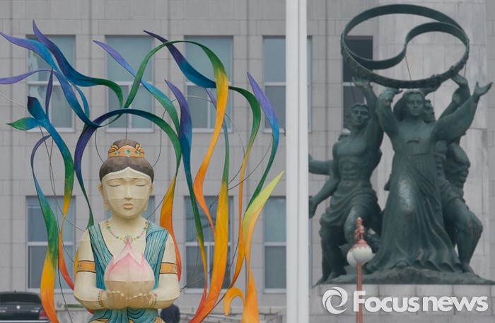 (서울=포커스뉴스) 석가탄신일을 3주 가량 앞둔 22일 오후 서울 여의도 국회 본청 앞 분수광장에 연등이 설치되어 있다.