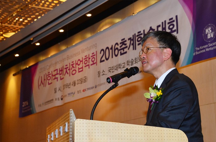 (서울=포커스뉴스) 최상목 기획재정부 차관이 22일 서울 성북구 국민대학교에서 열린 한국벤처창업학회 춘계학술대회에 참석해 축사를 하고 있다. <사진제공=기획재정부>