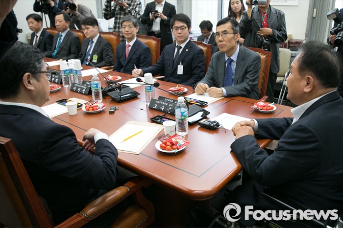 (서울=포커스뉴스) 이상민(오른쪽) 국회 법제사법위원회 위원장이 22일 오후 서울 여의도 국회 법사위 소회의실에서 사법시험 존치 여부 등을 논의하기 위한, 법조인 양성제도개선 자문위원회 첫 회의를 주재하고 있다.