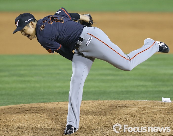 (서울=포커스뉴스) 22일 서울 잠실구장에서 열린 2016 프로야구 한화-두산 경기 6회말 2사 1,3루에서 한화 투수 박정진이 구원 등판해 투구하고 있다.