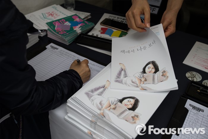 (서울=포커스뉴스) 세계 책의 날을 하루 앞둔 22일 오후 서울 중구 태평로 청계광장에서 2016 세계 책의 날 기념 '두근두근 책 속으로' 책드림 날 행사가 열리고 있다.