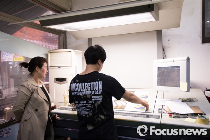 (서울=포커스뉴스) 세계 책의 날을 하루 앞둔 22일 오후 서울 중구 충무로의 한 인쇄소에서 감리를 보고 있다.