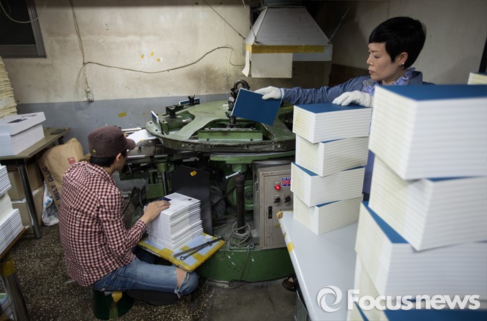 (서울=포커스뉴스) 세계 책의 날을 하루 앞둔 22일 오후 서울 중구 충무로의 한 인쇄소에서 책을 만들고 있다.