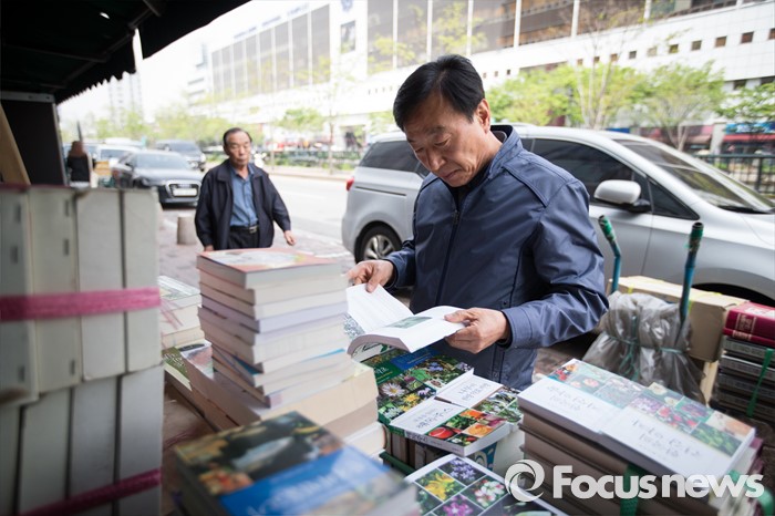 (서울=포커스뉴스) 세계 책의 날인 23일 오전 서울 중구 청계6가 평화시장 인근의 한 헌책방에서 한 시민이 책을 보고 있다. 청계 6가 헌책방거리는 1970년대 점포수가 200여 개에 달할 정도로 성황이었지만 현재는 25곳 정도 밖에 남아 있지 않다.