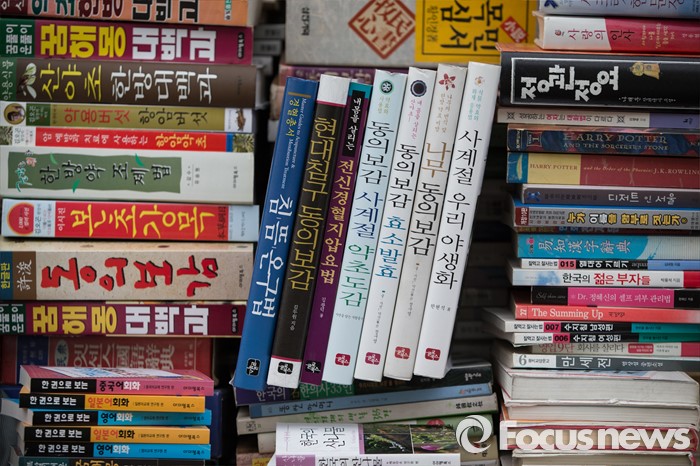 (서울=포커스뉴스) 세계 책의 날인 23일 오전 서울 중구 청계6가 평화시장 인근의 한 헌책방에 팔리지 않은 헌책들이 빼곡히 쌓여 있다. 청계 6가 헌책방거리는 1970년대 점포수가 200여 개에 달할 정도로 성황이었지만 현재는 25곳 정도 밖에 남아 있지 않다.