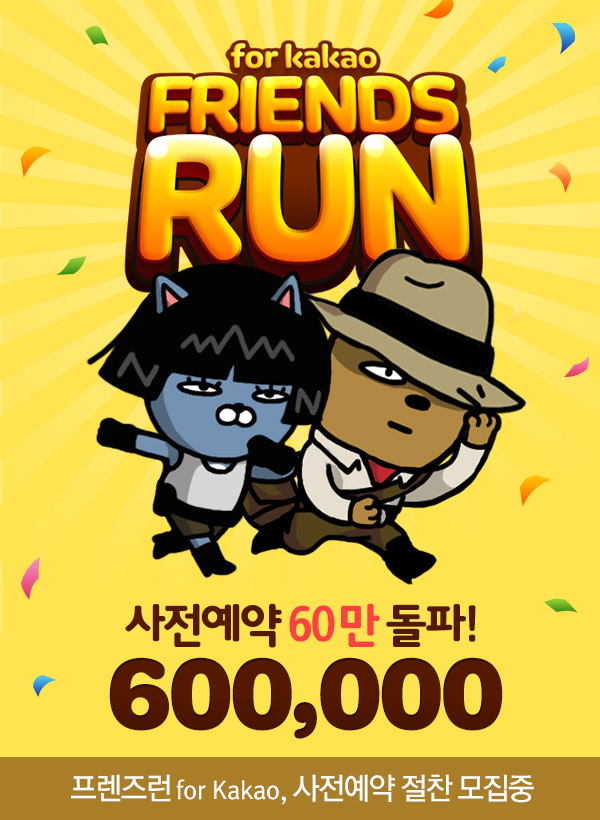 (서울=포커스뉴스) 넥스트플로어(대표 김민규)는 모바일 러닝게임 '프렌즈런 for Kakao'(개발사 이노에이지)의 사전 예약 이벤트에 60만명 이상이 참여했다고 24일 밝혔다.