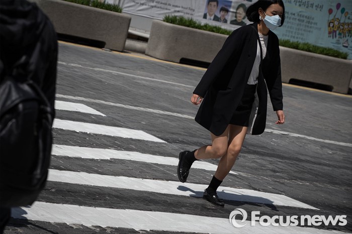 (서울=포커스뉴스) 서울지역에 33시간 지속됐던 미세먼지주의보가 해제된 24일 오전 시민들이 마스크를 쓴 채 오가고 있다.