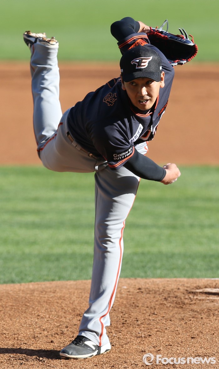 (서울=포커스뉴스) 24일 서울 잠실구장에서 열린 2016 프로야구 한화-두산 경기에서 1회말 한화 선발투수 심수창이 투구하고 있다.