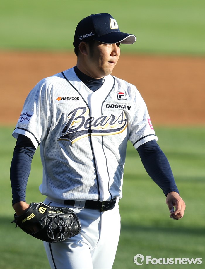 (서울=포커스뉴스) 24일 서울 잠실구장에서 열린 2016 프로야구 한화-두산 경기에서 두산 투수 장원준이 2회 수비를 마치고 덕아웃으로 들어가고 있다.