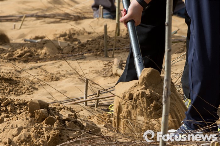 (다라더치/중국=포커스뉴스) 24일 오후 중국 내몽고 다라더치 쿠부치사막에서 2016 미래숲 15기 녹색봉사단 후원사 회원들이 나무심기작업을 하고 있다. 미래숲 녹색봉사단은 이번 봉사활동을 통해 황폐화된 사막에 나무 심기 및 각국 청년들과 우호를 증진을 위한 교류 활동을 전개할 예정이다.