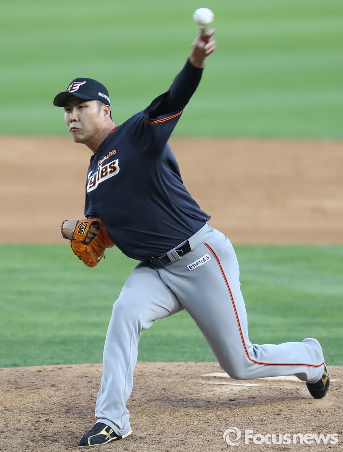 (서울=포커스뉴스) 24일 서울 잠실구장에서 열린 2016 프로야구 한화-두산 경기 4회말 마운드에 오른 한화 권혁이 투구하고 있다.