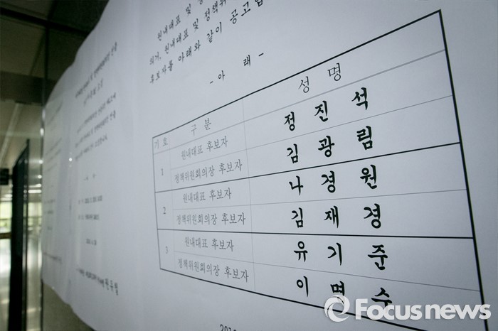 (서울=포커스뉴스) 새누리당의 20대 국회 첫 원내대표 선출을 하루 앞둔 2일 오후 서울 여의도 국회 새누리당 사무실 앞에 원내지도부 선출을 위한 당선자총회를 알리는 공고문이 게시되어 있다.
