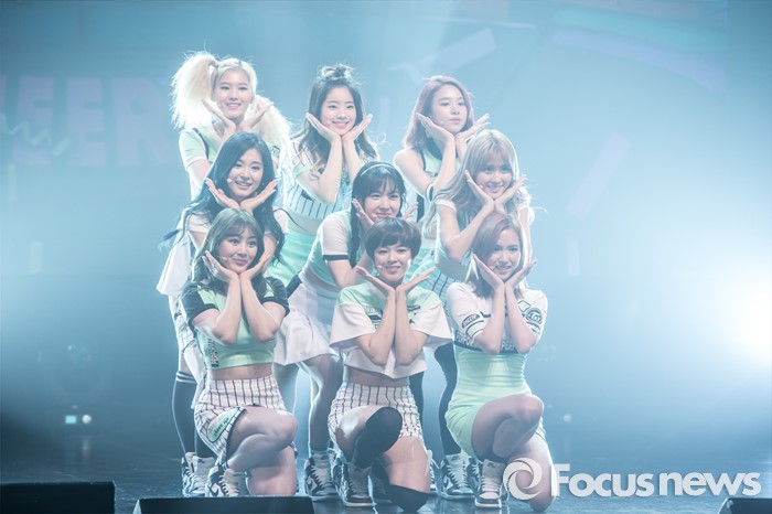 (서울=포커스뉴스) 25일 오후 서울 광진구 예스24 라이브홀에서 열린 걸그룹 트와이스의 미니앨범 'PAGE TWO' 발표 쇼케이스에 참석한 멤버들이 신곡무대를 선보이고 있다.