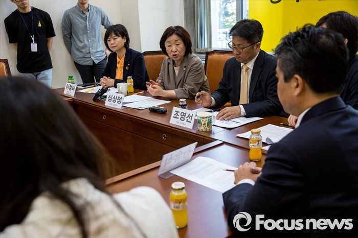 (서울=포커스뉴스) 심상정(왼쪽 두 번째) 정의당 상임대표가 2일 오전 서울 여의도 국회에서 열린 '테러방지법 관련 시민단체 간담회'에서 모두발언 하고 있다.
