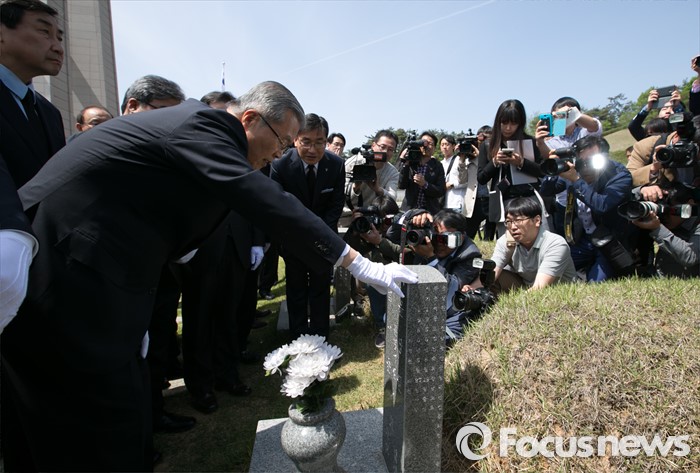 (광주=포커스뉴스) 김종인 더불어민주당 비대위 대표가 25일 오전 광주 북구 국립 5·18민주묘지를 방문해 20대 총선 당선인 및 광주·전남지역 낙선 인사들과 열사 묘역을 둘러보고 있다.