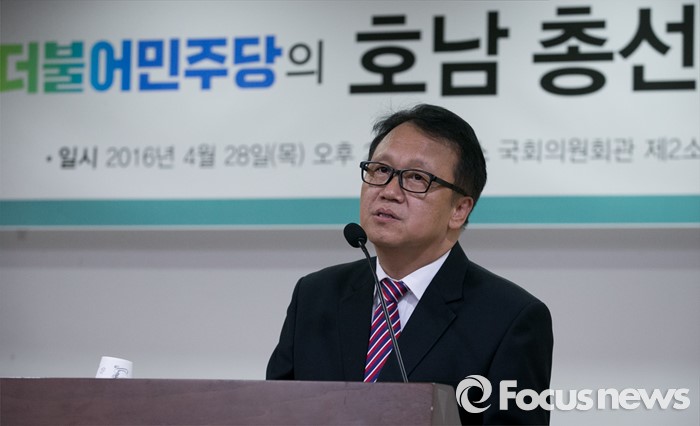(서울=포커스뉴스) 28일 오후 서울 여의도 국회 의원회관에서 열린 더불어민주당의 호남 총선 평가 성찰과 대안 토론회에 참석한 민병두 민주정책연구원장이 인사말을 하고 있다. 민 원장은 오는 29일 원내대표 출마 선언을 할 예정이다.