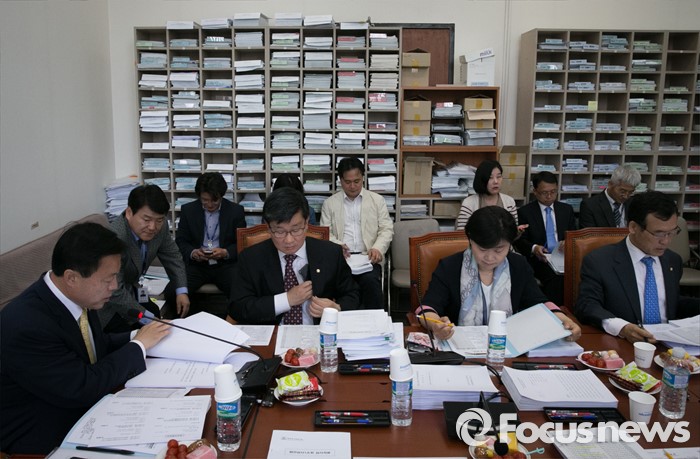 (서울=포커스뉴스) 26일 오전 서울 여의도 국회에서 열린 법제사법위원회 법안심사1소위원회에 참석한 이한성 소위원장 등 의원들이 법안 심사를 하고 있다. 왼쪽부터 이 소위원장, 전해철 야당 간사, 서영교 더불어민주당 의원, 임내현 국민의당 의원.