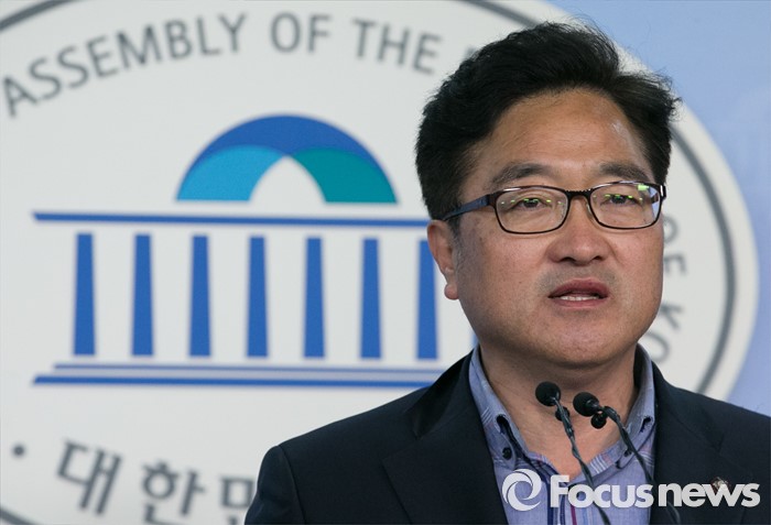 (서울=포커스뉴스) 우원식 더불어민주당 의원이 29일 오후 서울 여의도 국회 정론관에서 원내대표 출마 기자회견을 하고 있다.