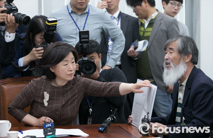 (서울=포커스뉴스) 28일 오전 서울 여의도 국회에서 심상정 정의당 상임대표 주재로 열린 가습기 살균제 3, 4등급 피해자 의료기록 분석 결과 및 피해 진상규명을 위한 간담회에 참석한 한 피해자가 진단서를 들고 발언하고 있다.