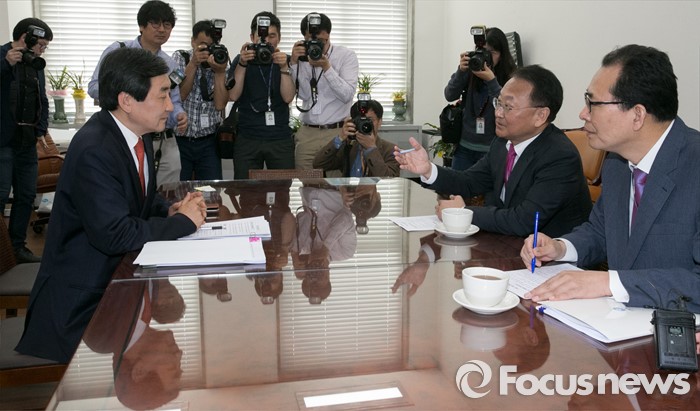 | △ 국회 찾아 3당 원내대표 만나는 유일호 부총리 |