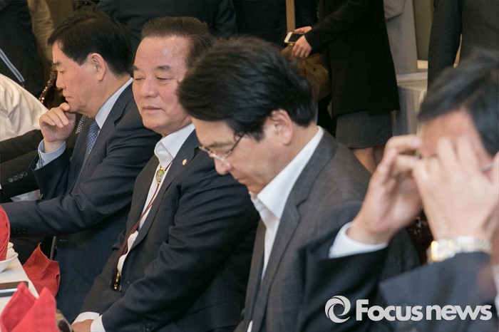 (서울=포커스뉴스) 25일 오후 서울 여의도의 한 중식당에서 열린 새누리당 중진의원 오찬 간담회 참석 의원들이 무거운 표정을 짓고 있다. 왼쪽부터 최경환, 정갑윤, 심재철 의원